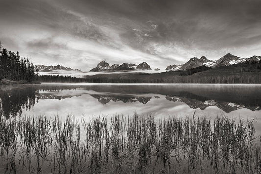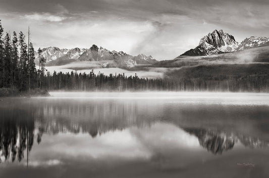 Little Redfish Lake Mist I Black Ornate Wood Framed Art Print with Double Matting by Majchrowicz, Alan