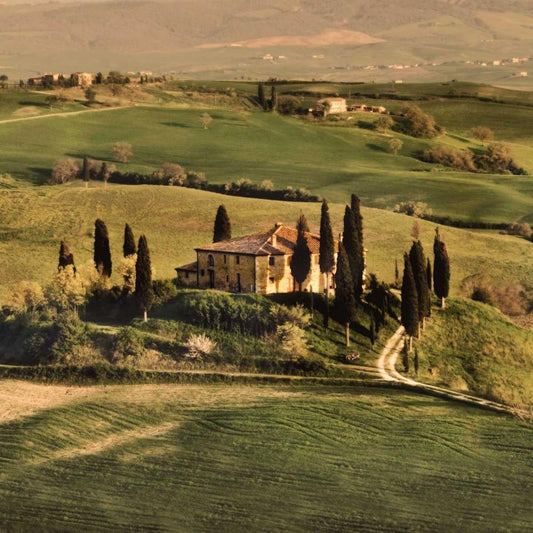 Evening Light Tuscany Black Ornate Wood Framed Art Print with Double Matting by Carmel, Elizabeth
