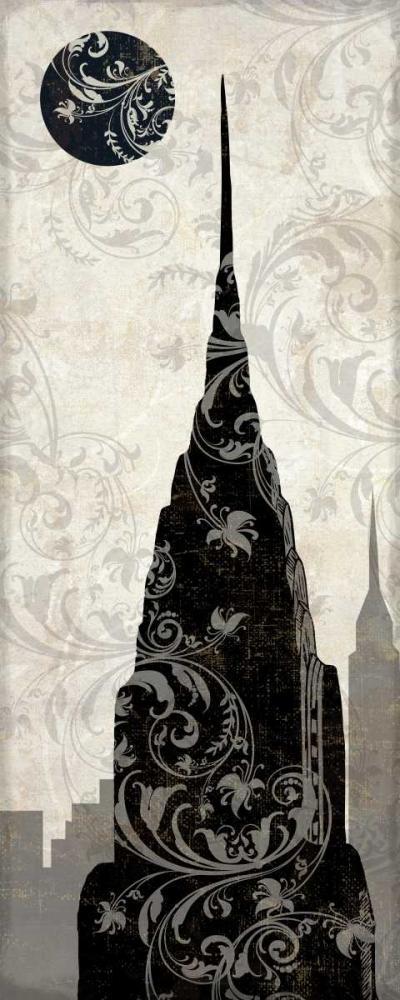 Moon over New York Black Ornate Wood Framed Art Print with Double Matting by Color Bakery