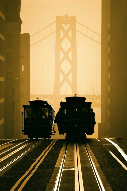 Cable Cars San Francisco Black Ornate Wood Framed Art Print with Double Matting by Funk, Mitchell