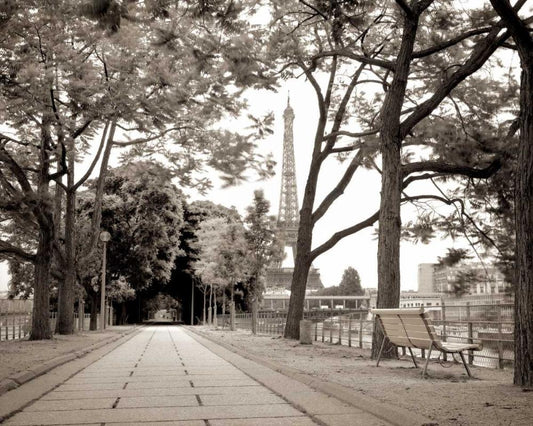 Promenade et Tour Eiffel Black Ornate Wood Framed Art Print with Double Matting by Blaustein, Alan