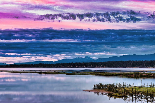 Komoks Harbour Fish Traps Black Ornate Wood Framed Art Print with Double Matting by Burdick, Chuck
