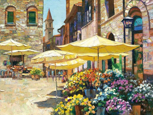 Siena Flower Market Black Ornate Wood Framed Art Print with Double Matting by Behrens, Howard