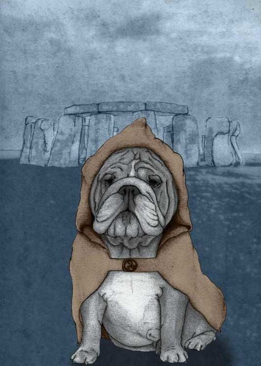 English Bulldog with Stonehenge Black Ornate Wood Framed Art Print with Double Matting by Barruf