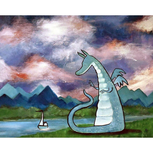 Francis The Dragon White Modern Wood Framed Art Print by Doss, Andrea