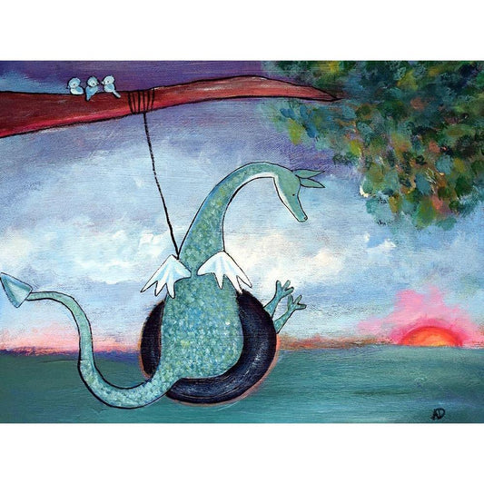 Dragon Swinging White Modern Wood Framed Art Print by Doss, Andrea