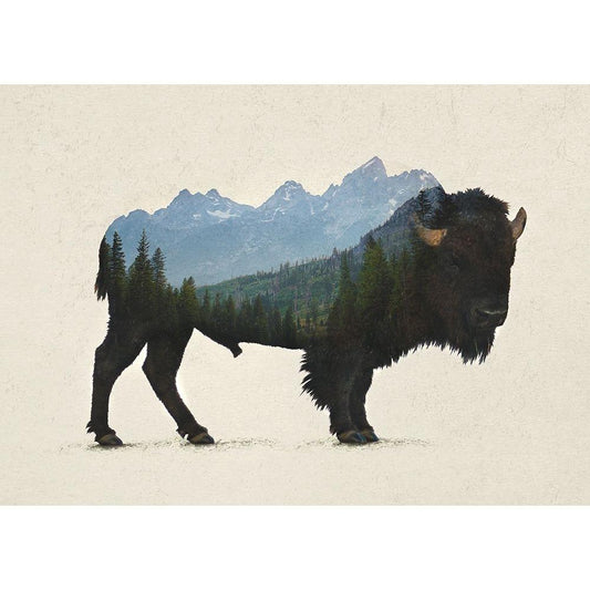 Grand Teton Bison White Modern Wood Framed Art Print by Davies Babies