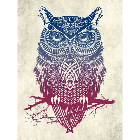 Warrior Owl White Modern Wood Framed Art Print by Caldwell, Rachel