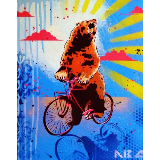 Bear Back Rider White Modern Wood Framed Art Print by AbcArtAttack