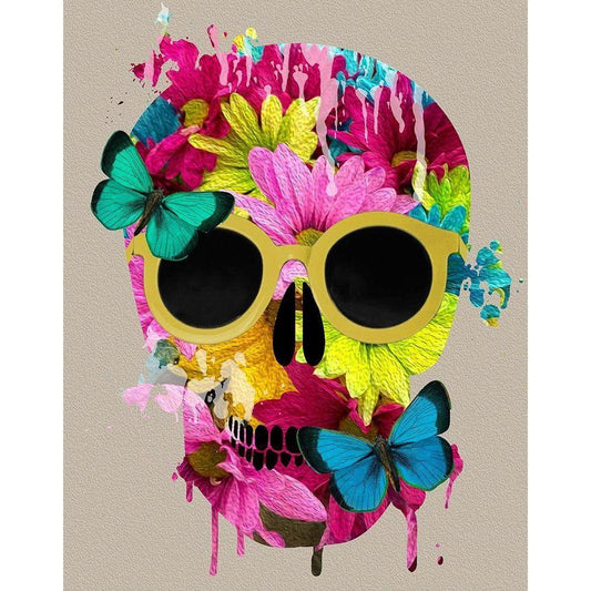 Floral Skull White Modern Wood Framed Art Print by Santiago, Daniela