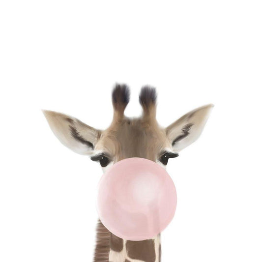 Giraffe Bubble Gum White Modern Wood Framed Art Print by Straatsma, Leah