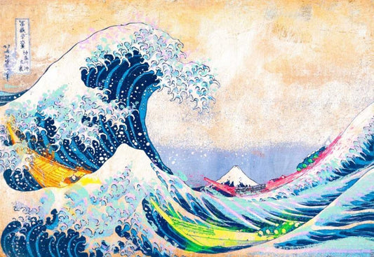 Hokusais Wave 2.0 White Modern Wood Framed Art Print with Double Matting by Chestier, Eric