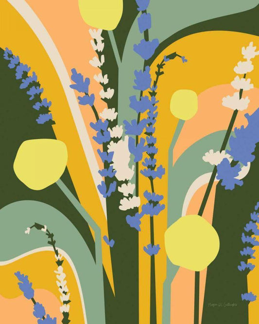 Lavender and Craspedia White Modern Wood Framed Art Print with Double Matting by Gallagher, Megan
