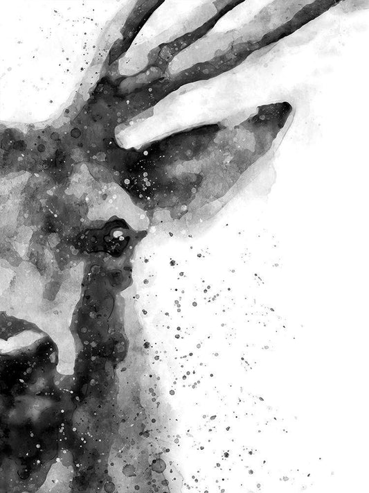 Deer At Attention White Modern Wood Framed Art Print with Double Matting by Wong, Brandon