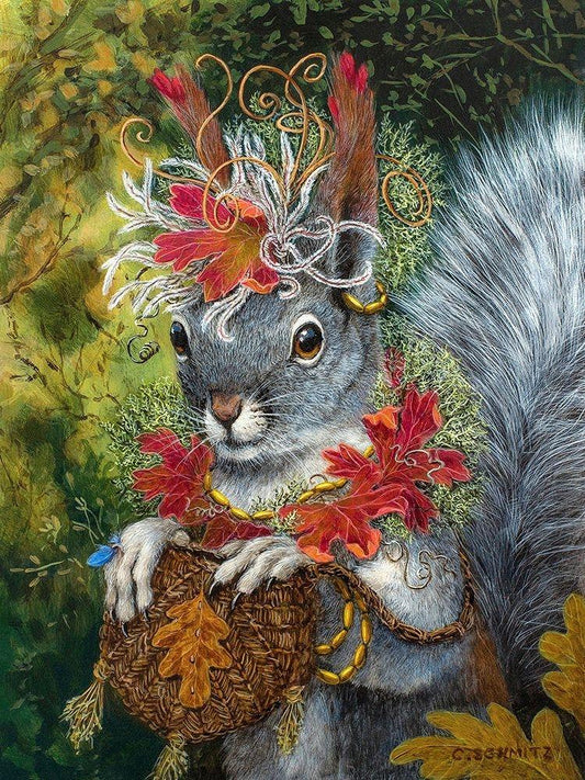 The Squirrel’s Dream White Modern Wood Framed Art Print with Double Matting by Schmitz, Carolyn