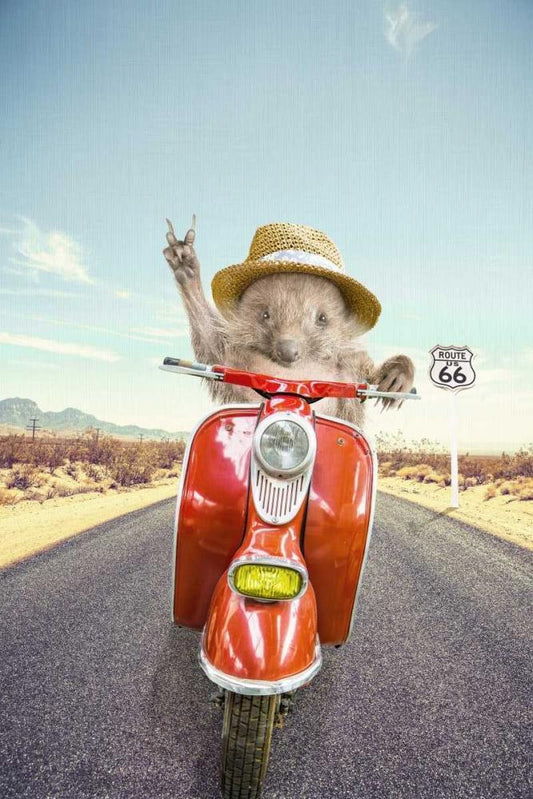 Hedgehog Traveler White Modern Wood Framed Art Print with Double Matting by Tai Prints