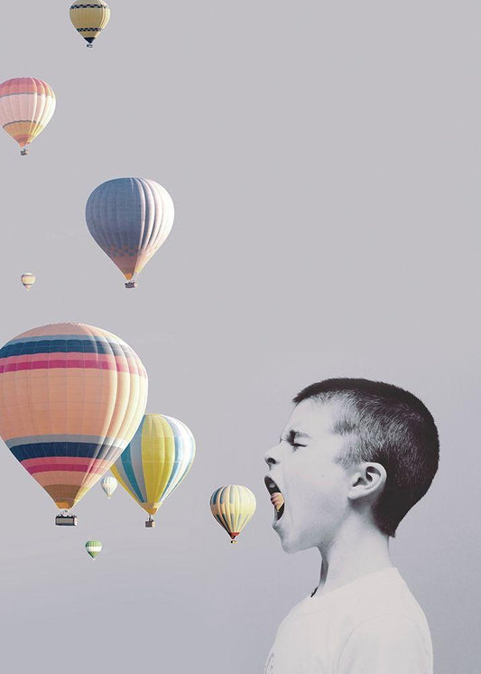 Cleo De Merode Baloons White Modern Wood Framed Art Print with Double Matting by Design Fabrikken