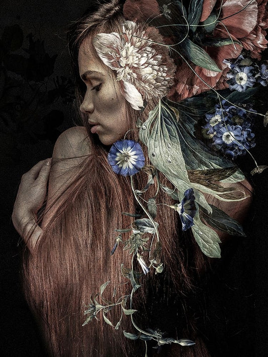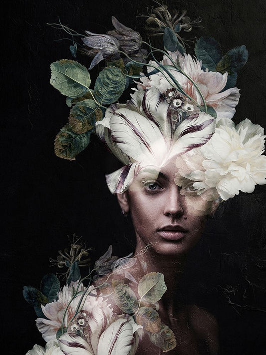 Botanical Woman No. 1 White Modern Wood Framed Art Print with Double Matting by Incado