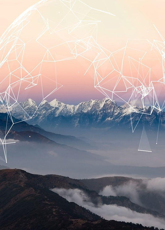 Geo Mountain White Modern Wood Framed Art Print with Double Matting by GeoMania