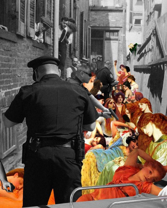 Get in Line White Modern Wood Framed Art Print with Double Matting by Ingberg, Tommy
