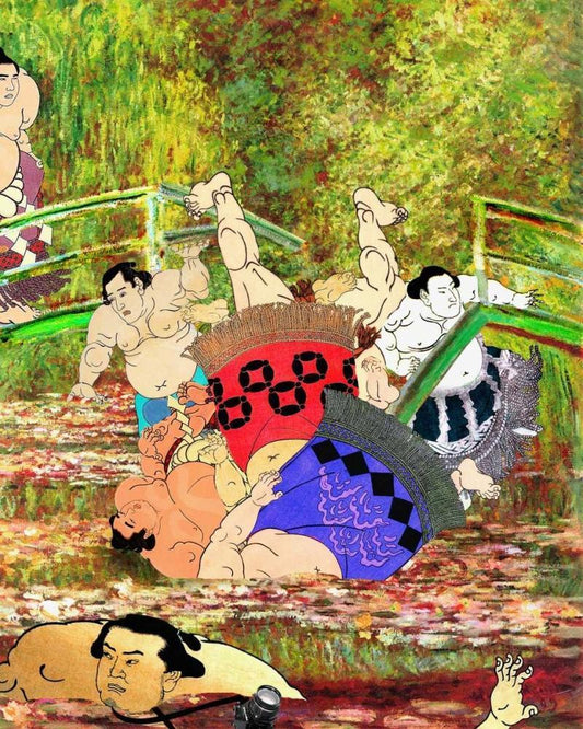 Japanese Footbridge Mishap White Modern Wood Framed Art Print with Double Matting by Kite, Barry