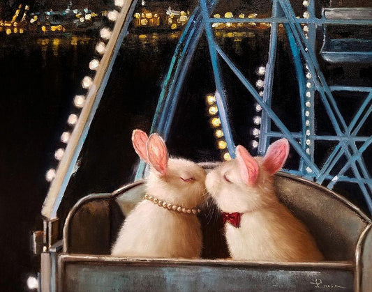 First Kiss White Modern Wood Framed Art Print with Double Matting by Heffernan, Lucia