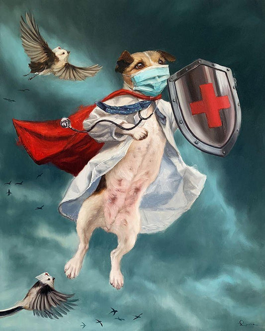 Dr. Care White Modern Wood Framed Art Print with Double Matting by Heffernan, Lucia