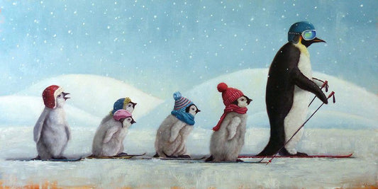 Ski School White Modern Wood Framed Art Print with Double Matting by Heffernan, Lucia