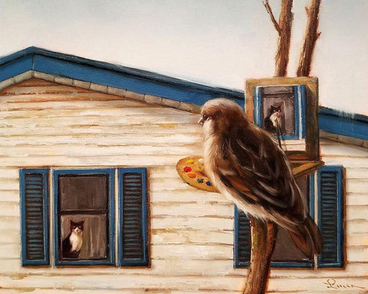 Birdz In Da Hood White Modern Wood Framed Art Print with Double Matting by Heffernan, Lucia