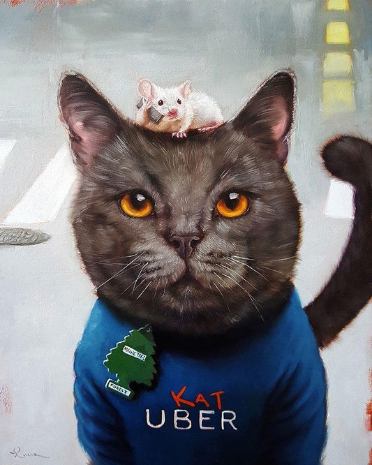 Cat Uber White Modern Wood Framed Art Print with Double Matting by Heffernan, Lucia