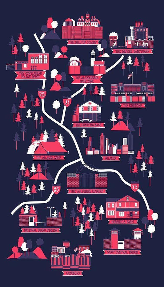 The Walking Dead Map White Modern Wood Framed Art Print with Double Matting by Farkas, Robert
