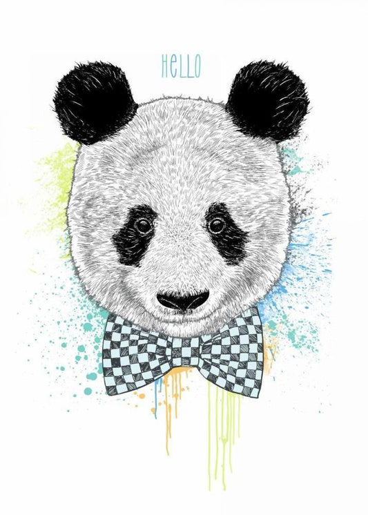 Hello Panda White Modern Wood Framed Art Print with Double Matting by Caldwell, Rachel