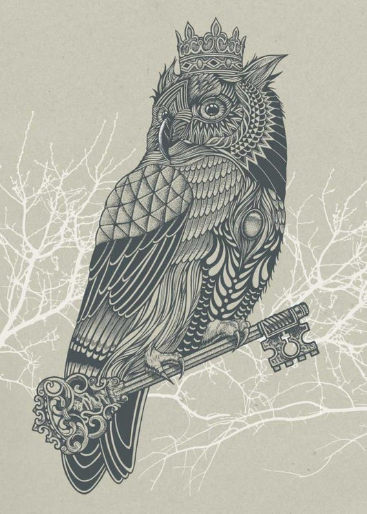 Owl King White Modern Wood Framed Art Print with Double Matting by Caldwell, Rachel