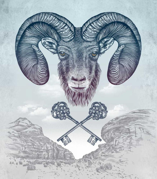 Ram White Modern Wood Framed Art Print with Double Matting by Caldwell, Rachel