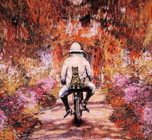 Monet Cat White Modern Wood Framed Art Print with Double Matting by Chameleon Design, Inc.