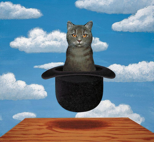 Magritte Cat White Modern Wood Framed Art Print with Double Matting by Chameleon Design, Inc.