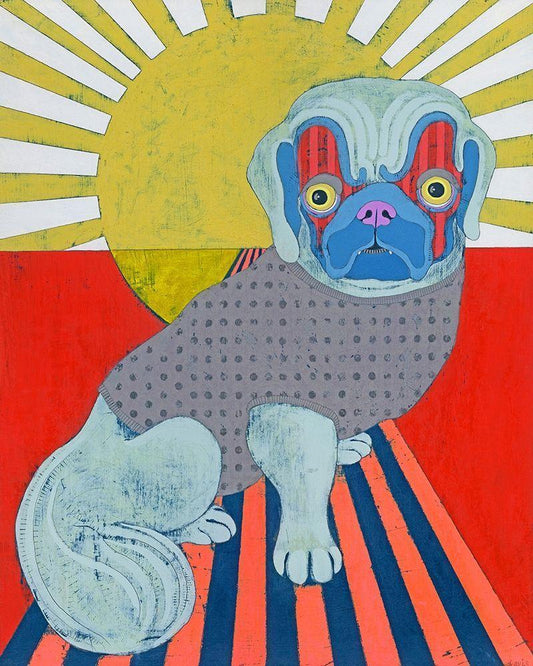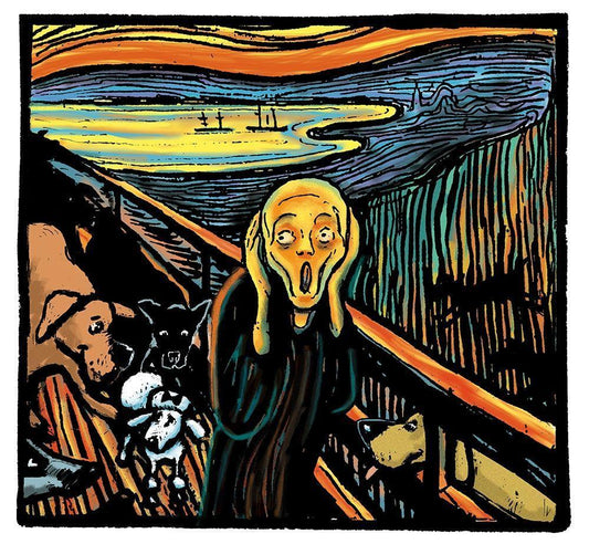 Munch Dog White Modern Wood Framed Art Print with Double Matting by Chameleon Design, Inc.