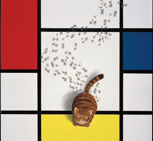 Mondrian Cat White Modern Wood Framed Art Print with Double Matting by Chameleon Design, Inc.