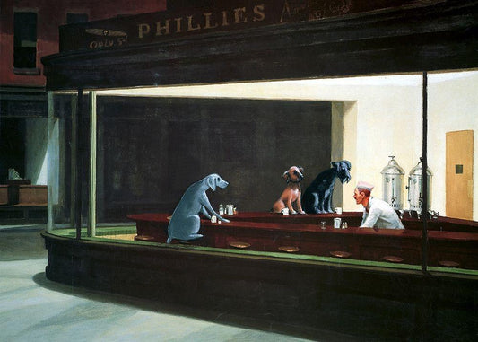 Hopper Night Hounds White Modern Wood Framed Art Print with Double Matting by Chameleon Design, Inc.