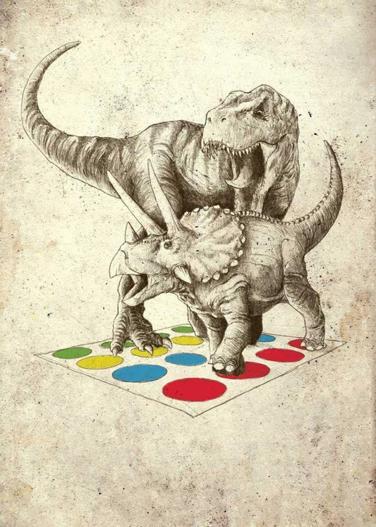 Dino Love White Modern Wood Framed Art Print with Double Matting by Buxton, Michael