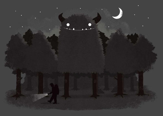 Monster Hunting White Modern Wood Framed Art Print with Double Matting by Buxton, Michael