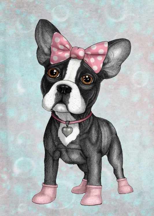 Frenchie Summer Style White Modern Wood Framed Art Print with Double Matting by Barruf