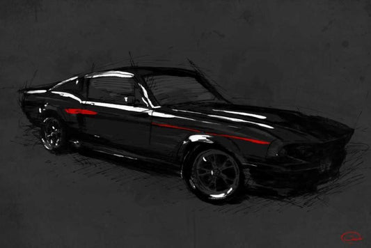 Muscle Car Black White Modern Wood Framed Art Print with Double Matting by OnRei