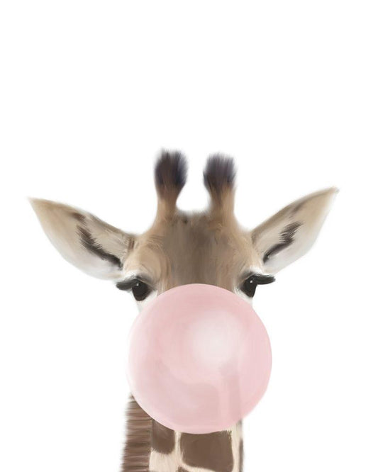 Giraffe Bubble Gum White Modern Wood Framed Art Print with Double Matting by Straatsma, Leah