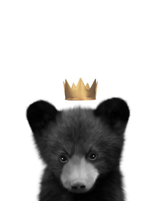 Crown Black Bear White Modern Wood Framed Art Print with Double Matting by Straatsma, Leah