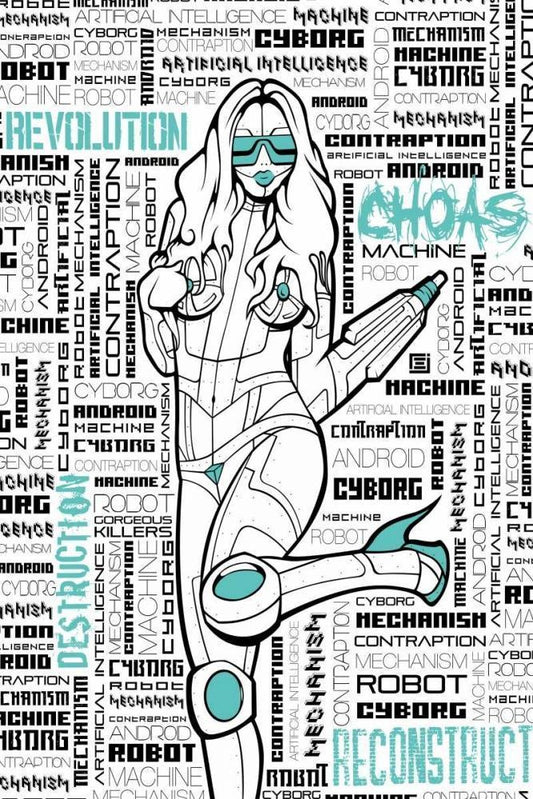 Robot Chick White Modern Wood Framed Art Print with Double Matting by Rodriquez Jr, Enrique