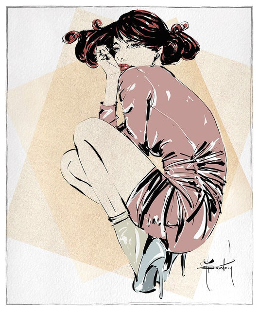 42 Rocker Girl White Modern Wood Framed Art Print with Double Matting by TMBorenstein