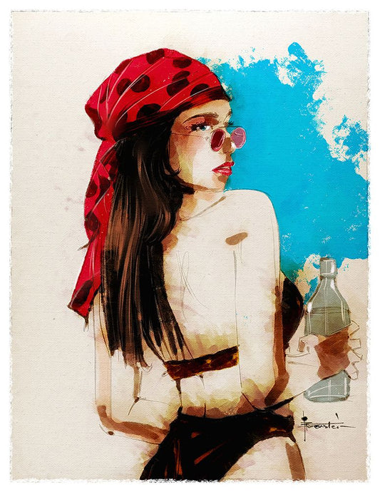 38 Parrot Girl White Modern Wood Framed Art Print with Double Matting by TMBorenstein