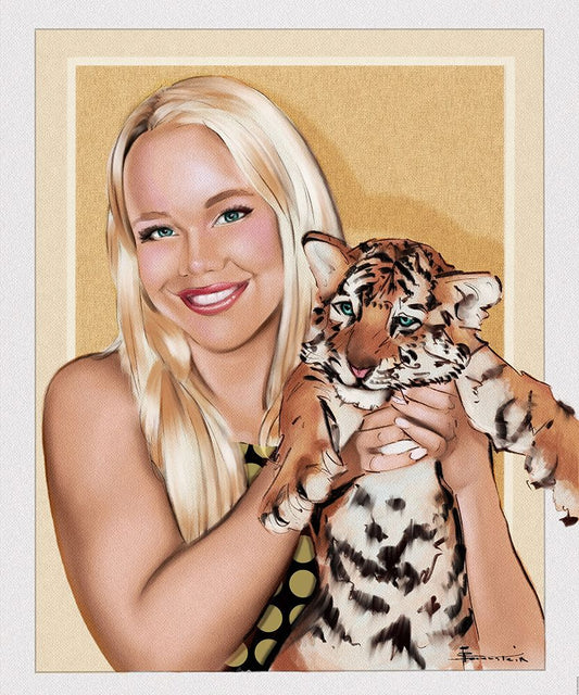 53 Tiger Girl White Modern Wood Framed Art Print with Double Matting by TMBorenstein