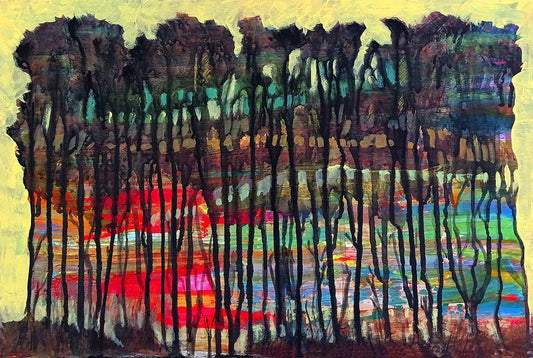 Trees-1 White Modern Wood Framed Art Print with Double Matting by Green, Howie